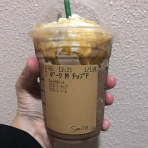 今日めちゃくちゃ久しぶりに出勤前にスタバ行ってダークモカチップフラペチーノ買ってみました🫶🏻いつもなら絶対選ばないけど今日はいつも選ばないようなやつ買ってみた😂